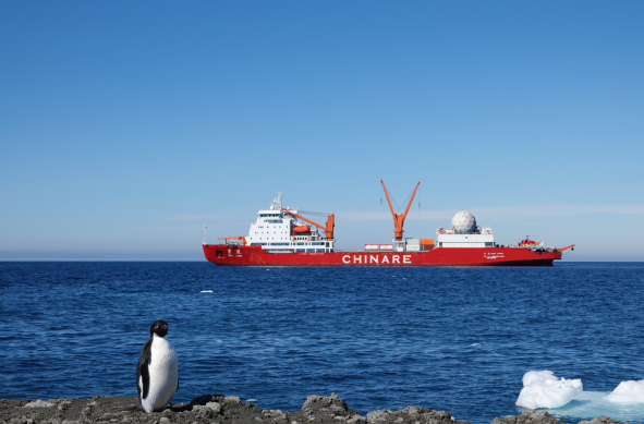 北京时间12月29日,执行中国第42次南极考察任务的“雪龙”号极地科考破冰船顺利抵达秦岭站海域,并开展卸货作业。本次卸运物资总重量约1400吨,包括秦岭站后勤保障物资、工程物资、科研物资和油料。物资将通过驳船卸运上站。