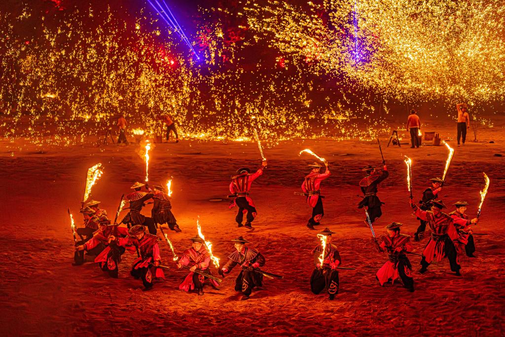 万岁山武侠城演艺项目《打铁花》。(受访者供图)
