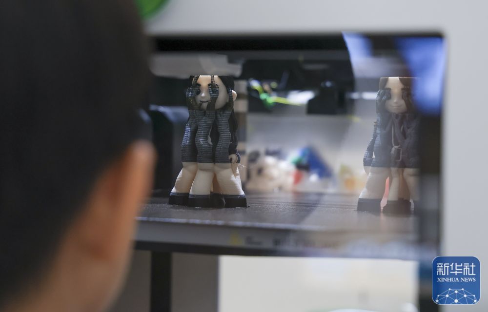 ↑ 1月18日,顾客在深圳市南山区的INNO100全球创新旗舰店“万物定制工作站”参观3D打印机工作。“万物定制工作站”拥有3D打印机等各类DIY设备,可以进行产品的个性化定制。