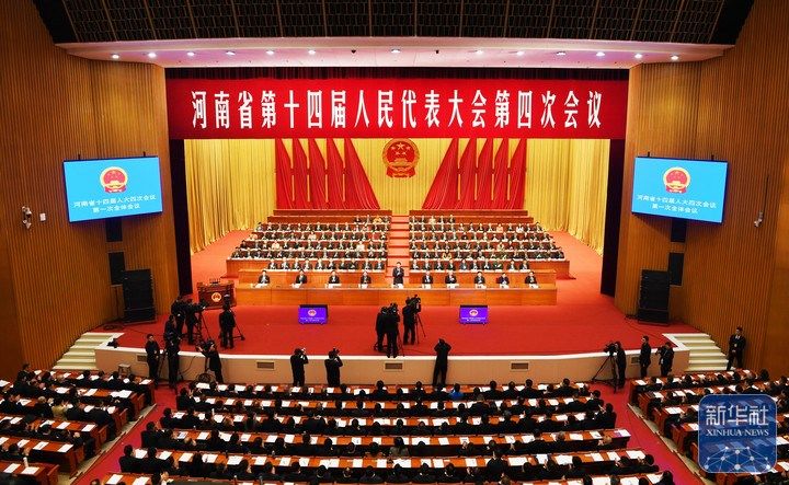 1月26日上午,河南省十四届人大四次会议在河南省人民会堂开幕。(新华社记者 张浩然 摄)