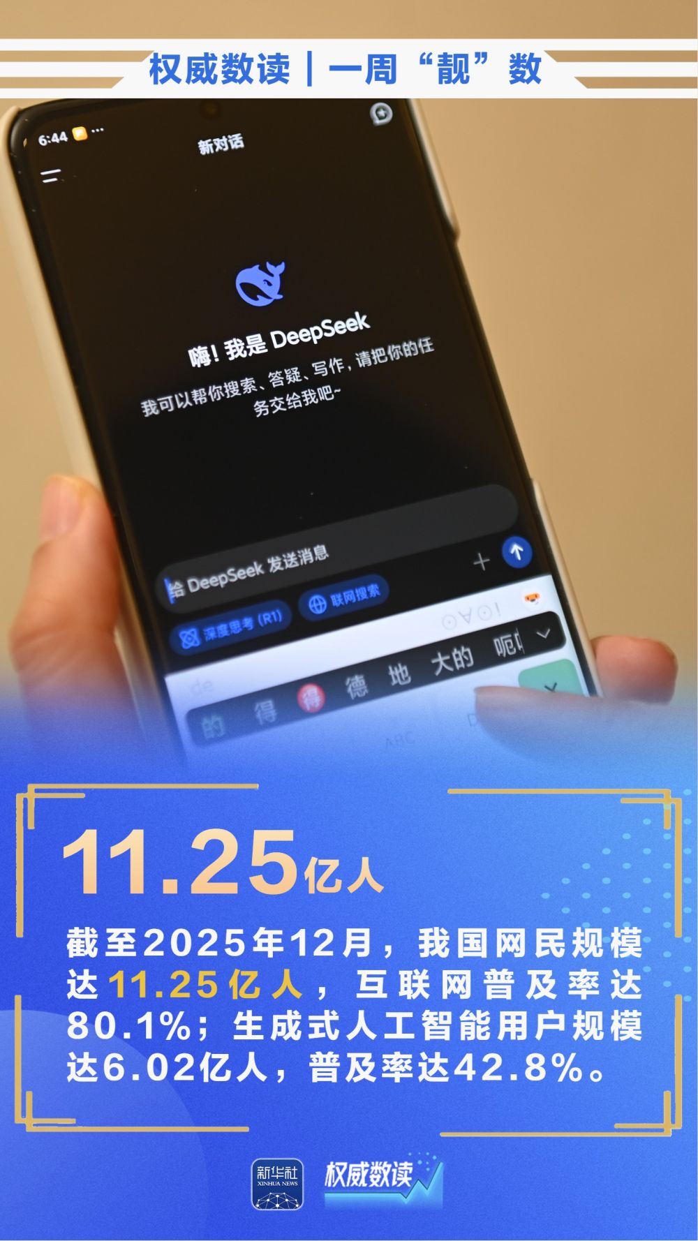 截至2月5日8时,铁路12306已累计发售春运火车票1.12亿张;春运首日,全国铁路发送旅客1223.5万人次;截至2025年12月,我国网民规模达11.25亿人,互联网普及率达80.1%……本周,这些数据最值得关注!