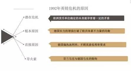 但在当时,统一后的德国出现了巨额财政赤字,政府担心由此引发通货膨胀,因此通货膨胀率仅为3.5%的德国非但拒绝七国首脑会议要其降息的要求,反而在1992年7月把贴现率升为8.75%。这样,过高的德国利率引发外汇市场抛售英镑、意大利里拉,这是1992年欧洲英镑危机的直接原因。