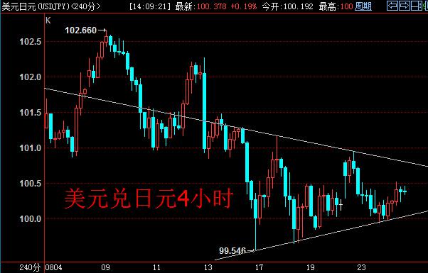 美元兑日元日线图上看,8月中旬以来KD指标一直运行在超卖区上方附近,过去一个星期,K线实体重心基本处于一条水平线上,显示出很强的抗跌性。4小时周期上,收敛三角形区间下沿支撑有效,短线价格波幅继续收敛。