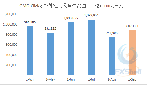 GMO Click场外外汇交易量为8.87万亿日元(合850亿美元),环比增加18.7%。