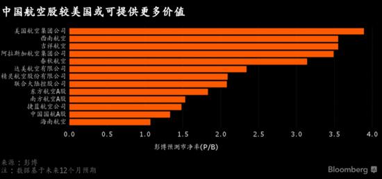 “若从市净率(P/B)的角度来比较,中国航空股比美国航空股便宜了很多,” 大华继显(UOB Kay Hian)驻香港的民航业分析师Sophie Yu周三接受彭博采访时表示,这个行业内看P/B比较多,因而中国航空股要比美国同业能提供更好的价值。