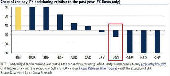 这是美国银行的资金流动数据透露出的信号。该数据混合了持仓、对冲基金和长线大型机构投资者客户信心调查,以及公开发布的期货数据。该行的结论是,在美国大选之后布局的美元多仓,已经完全消失。