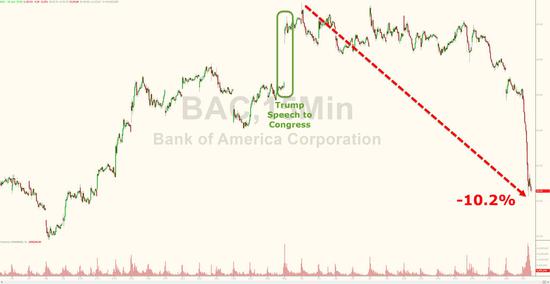 金融板块个股表现更是惨不忍睹。美国银行股价大跌5.8%,自美国大选以来的高位下跌超10%: