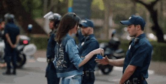 不知是被超模的美貌所迷惑了,还是百事可乐有什么魔力,就喝了一口,警察就语出惊人,他跟身边的同伴说:“嗨,或许我们也应该和他们一起抗议?”