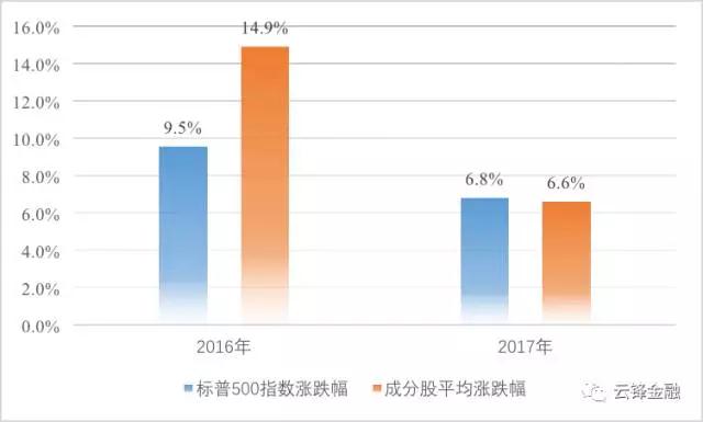 但如果拆分看个股的话,标普500成份股中跑赢指数的只有242支,而2016年全年跑赢指数的成份股足足有297支。