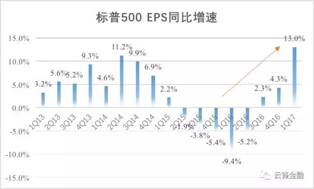 整体来说,一季度标普500 EPS同比增速达到13%,创下2011年三季度以来的最高记录。
