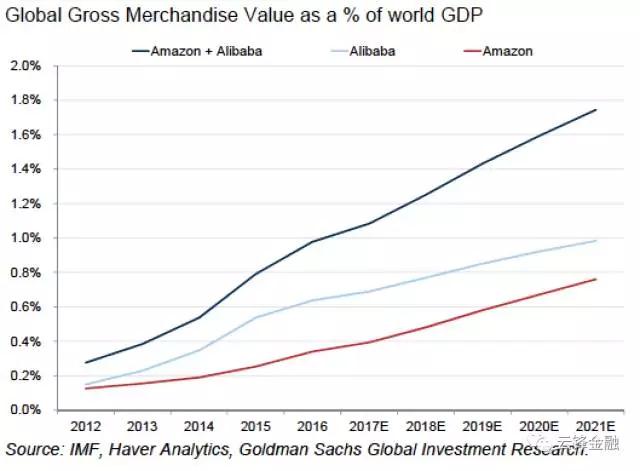 如果将亚马逊和阿里巴巴的销售额加总,现在已经占到了全球GDP的1%。互联网“泡沫”,已然变成了互联网“现实”。