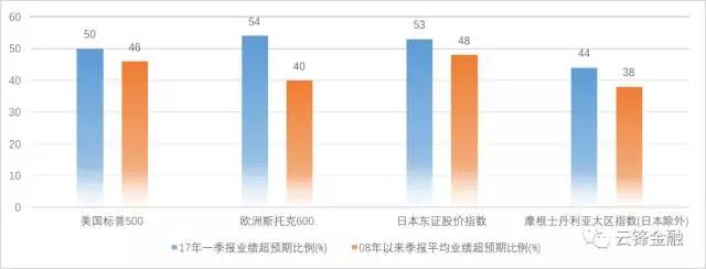 事实上,全球范围内的公司盈利都在回暖。从2017年一季报来看,全球主要股指成分股的业绩超预期比例都大幅好于历史平均水平。