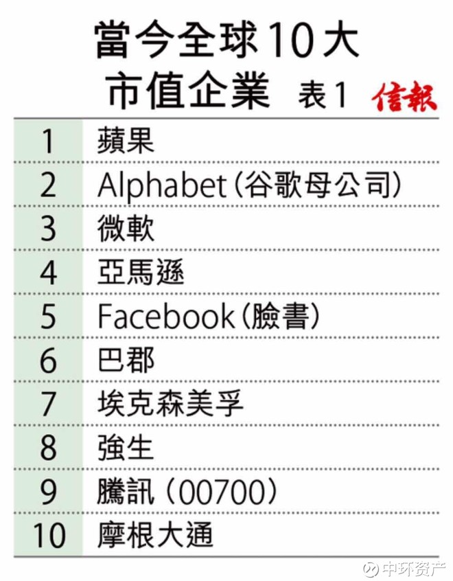 全球10大市值上市企业,美国占9间,中国只占1席【表1】,当然是大家至爱的股王腾讯控股(00700)。六间是科技公司,其余四间是旧经济——两间金融,石油、医药各一。