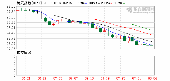 美元指数在周三最低触及92.39点,为2016年5月以来的最低水平。美元指数为衡量美元兑六种主要货币的贸易加权指数。