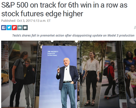 美国股指期货周三盘前小幅攀升,标普500指数今天有望连续第六个交易日上涨,并再创新高。