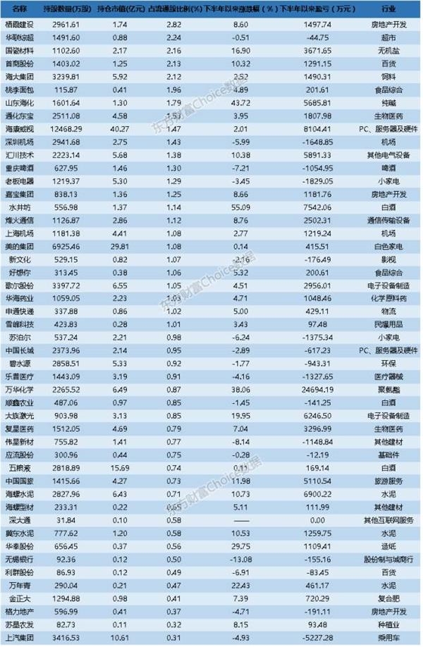 从持仓数量占流通股比例来看,瑞士联合银行集团持有栖霞建设2961.61万股,占其流通股比例为2.83%。此外,持股数量超过流通股比例2%的还有华联综超(2.24%)、国瓷材料(2.16%)、首商股份(2.13%)和海大集团(2.12%)。