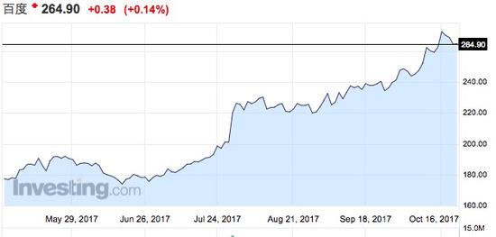 百度将于10月26日发布三季报。10月10日,百度收盘价位252.22美元/股,盘中最高触及254.28美元,超越自上市以来的历史峰值251.99美元。