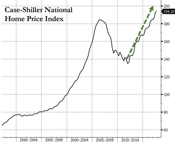 就像2009年时全球金融体系崩溃时出现的历史性趋势一样,美国国内房价看起来又一次出现了暴涨,其涨幅似乎能够与亚马逊或Facebook最近的股票价格趋相媲美,而不是作为一个经济运行中的价值储备载体来发挥稳定性能。这可能与目前美国国内的整体通胀率情况大致趋同。