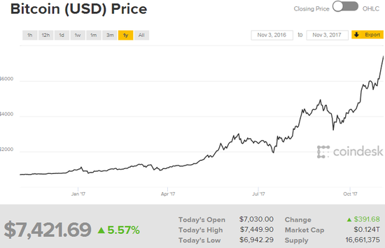 本交易日盘前,比特币一度涨破7500美元一枚,随后小幅滑落至7400美元上方。而最近一周多,黄金的走势非常的平坦,一直在1280美元每盎司下方徘徊。早在年初当比特币的价格即将高于当时的一盎司的黄金的价格的时候,华尔街关注比特币的分析师就认为:比特币很有可能会取代黄金,并因此而设定比特币最终能涨到10万美元一枚。现在,似乎这正在发生。