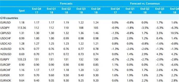 而继高盛、摩根士丹利之后,巴克莱也同样对明年美元的走势感到悲观。巴克莱在最新的2018年汇市前瞻中指出,近期共和党在税改方案的细则上一再让步,当前较为温和的税改方案在今年年底至明年一季度最终获得参议院通过的可能性正在持续上升,而这有可能会对美元指数构成一定利好。不过美元以此为契机重回2017年年初高点的可能性微乎其微,巴克莱认为税改计划即使通过也不可能改变美元的下行趋势。