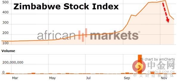 在执掌政权37年之久的穆加贝辞职后,津巴布韦穆加贝时代的前副总统姆南加古瓦将于本周五抵达津巴布韦宣誓就任总统。但就在迎接新领导人之前,津巴布韦股市今天又下跌了10%,在过去的几天里,该国的股市已经累计大跌了约35%,投资者充满忧虑情绪。