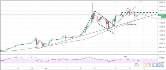 因此,价格走势图显示比特币想要上涨至20000美元可能需要花费更多的时间。