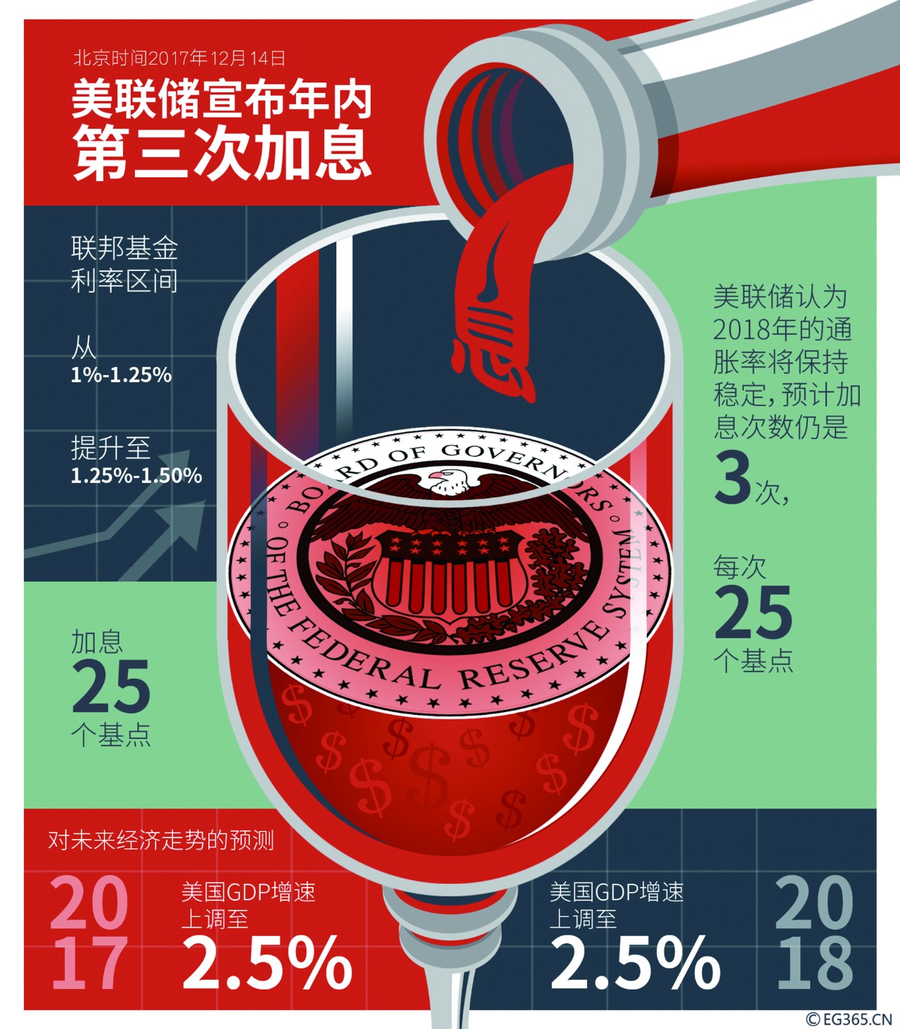 12月14日凌晨,美联储以7比2的投票结果宣布加息25个基点,将联邦基金利率目标区间上调至1.25%至1.5%,这是美联储今年内第三次加息,与市场预期一致。