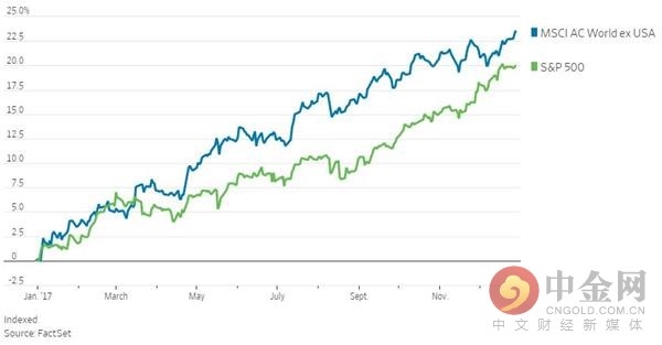 《华尔街日报》援引FactSet数据指出,今年经合组织OECD国家的股市携手齐涨,为2010年以来首次。除美国外的明晟全球指数MSCI ACWI今年将累涨24%,是2012年以来首次比美股标普500大盘表现还要好。