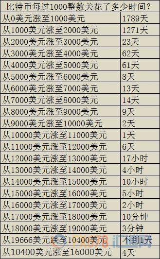 比特币花了1789天,从$0涨到$1000。花了1271天,从$1000涨至$2000。越到后来,这一“妖币”每过1000整数关花的时间就越少,从2017年整年的走势中可以看出,这种加速度的增长,是符合泡沫的特征的。