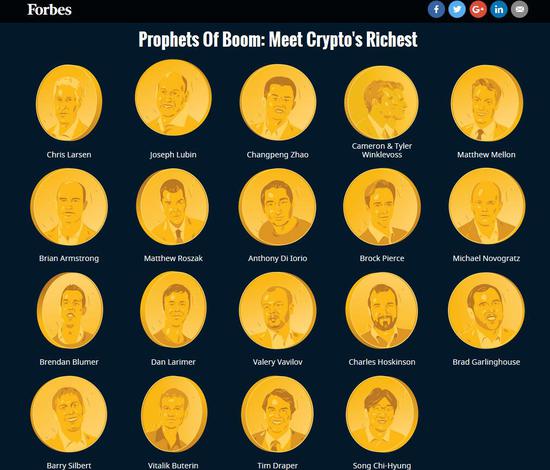 福布斯近日发布了首个数字货币领域富豪榜,瑞波币创始人Chris Larsen以75-80亿美元身家排名第一;以太坊联合创始人Joseph Lubin身家估值10-50亿美元,排名第二;币安创始人赵长鹏位列第三,身家估值11-20亿美元。