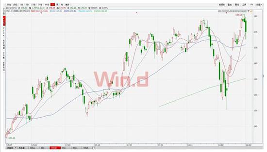 由于新款Iphone需求表现强劲,同时受到股神力捧推动,苹果股价在本周二(2月27日)盘中一度创出180.62美元历史新高,市值超9000亿美元。尽管在本周三、四股价出现一定的回撤,但是目前市值仍位于8900亿美元附近,所以只要苹果股价再涨12%左右,该公司市值将涨破万亿美元大关。