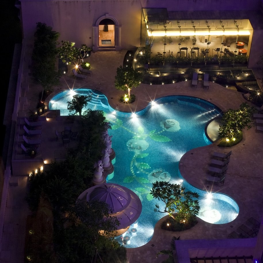 或在索菲特酒店的屋顶泳池放松。