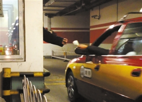 昨日,北京西站、北京南站、北京站、首都机场等交通枢纽,各出租车进站口的收费亭前,面对收费员伸出亭外接钱的手,出租司机仍需递上1元“进场费”方许进站。