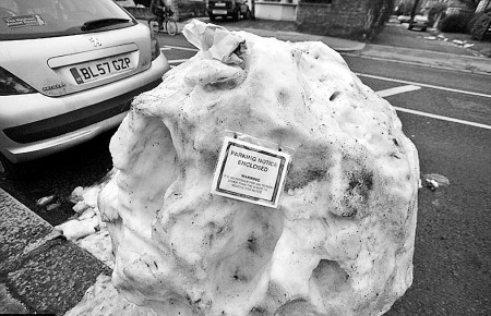 在大城市里找停车位可是很多人心中的老大难问题,在风霜雪雨的天气更是如此。据英国媒体2月7日报道,日前,英国伦敦路边的一个“违章停放”的物体就被贴上了一张显眼的黄色罚单,令路人纷纷侧目。原来,被罚的可不是什么机动车,而是一个超大号雪球!