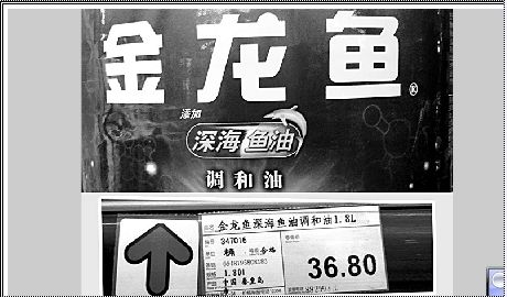 然而,正是“金龙鱼添加深海鱼油调和油”这个名称,无论从其产品标签、还是定量标示的规定上,都让消费者感到名不副实。记者在平西府物美超市的货架上发现,在所谓的“金龙鱼添加深海鱼油调和油”物价标签上很清晰地打着“金龙鱼深海鱼油”的字样。
