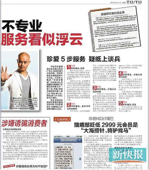 如果你需要一个维权的平台,新快报向你敞开投诉的大门,一起携手捍卫婚姻的神圣。你有任何关于珍爱网的投诉,请致电020-85180865或发邮件至xk-blc@126.com,也可以在新浪微博@新快报赚钱。