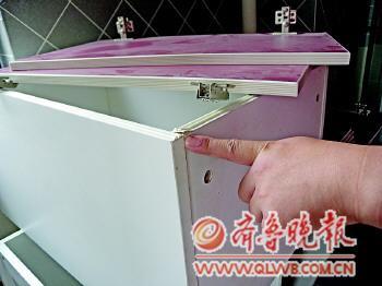 家具多处出现封边崩起的情况。 本报记者 王倩 摄