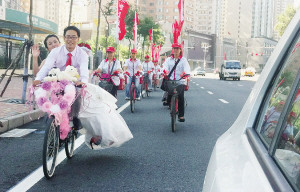 男子骑自行车迎娶新娘 新娘表示很浪漫(图)