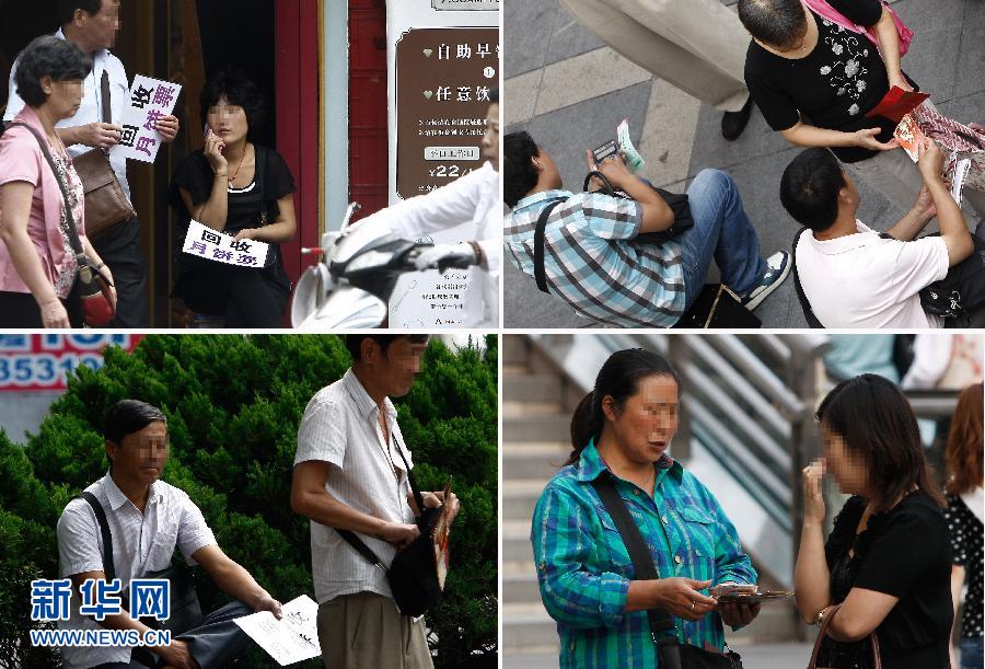 “黄牛”在人民广场和徐家汇两大商圈的街头回收和兜售月饼券(9月21日摄,拼版照片)。中秋节临近,月饼销售进入旺季,月饼券也呈现交易火爆的局面。据了解,沪上月饼生产、经销企业今年共发放月饼券920多万张。靠“黄牛”搭桥,一张张月饼券在给消费者带来便利的同时,也孕育了一条灰色利益链。记者通过走访调查发现:企事业单位以6折到7折的价格从厂家团购月饼券发给员工;员工以4折到6折的价格把月饼券卖给“黄牛”;“黄牛”会加价把券销售给需要月饼券的消费者,并把倒卖不掉的月饼券以4折到5折的价格卖回印券的厂家。为了增加月饼券销量,部分厂家甚至会把券直接低价卖给“黄牛”或代销公司。在这一过程中,厂家可以在无需生产任何月饼的情况下,轻松赚取两折左右的利润,而黄牛则通过低买高卖获取一折以上的差价。这样的利益链下,月饼已成为一个由月饼厂家出品的“类期货产品”,名为月饼买卖,但大多是通过月饼券完成交易,整个过程不需要实物月饼出现,最终付出真金白银的只是需要月饼券的企事业单位和消费者。人情往来的需要,使月饼券在发行流通过程中给了生产企业和“黄牛”以可乘之机。专家认为:月饼券票面价格打四至五折之后依然有利可图,如此虚高标注价格的生产厂商涉嫌价格欺诈,而“黄牛”倒卖月饼券则涉嫌非法经营,两者均扰乱了市场的正常经营秩序。新华社记者 裴鑫摄