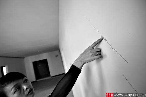 陈小姐在拿到钥匙验房后才发现,房屋墙壁存在多处裂缝。本版摄影记者丁嘉