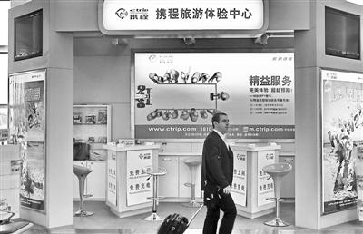 湖北武汉天河机场,一位外国乘客从携程旅游体验中心前走过。许丛军/东方IC