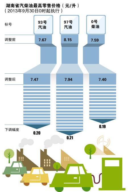 在经历了油价“三连涨”后,广大车主终于在国庆节前迎来了油价下降的好消息:昨日下午,国家发展改革委发出通知,决定将汽、柴油价格每吨分别降低245元和235元,测算到零售价格90号汽油和0号柴油(全国平均)每升分别降低0.18元和0.20元,调价执行时间为9月29日24时。湖南的汽柴油价格也紧跟着回落,97号汽油再次回归“7时代”。这个国庆假期,自驾游除了高速公路免通行费,油费也可以省点了。