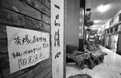 茶园茶城内,已经有商户贴出“店面转让”的通知 摄/法制晚报记者 郭谦