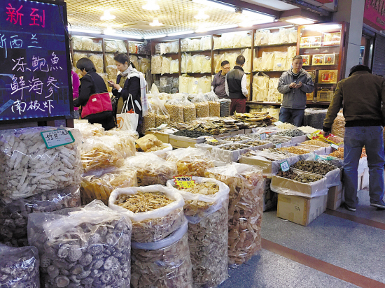 尽管公务消费的限制影响了高端礼品的节前销量,但在一德路的海味批发市场,仍有不少市民前往采购。一商行老板表示,批发市场的海味价格比商场便宜很多,前来采购的市民大多数是自家食用,买来送礼的很少。