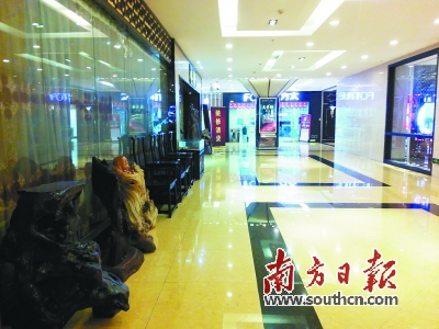 广州某家居城内,红木家具区域顾客稀少。