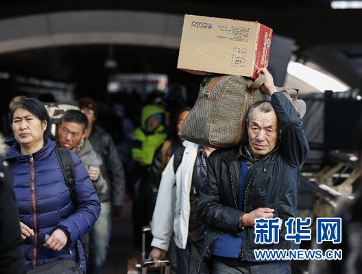 1月24日,旅客在铁路北京站进站上车。当日,为期40天的2016年春运正式拉开大幕。据交通运输部预测,预计全国旅客发送量将达到29.1亿人次、同比增长3.6%。 新华社记者沈伯韩 摄