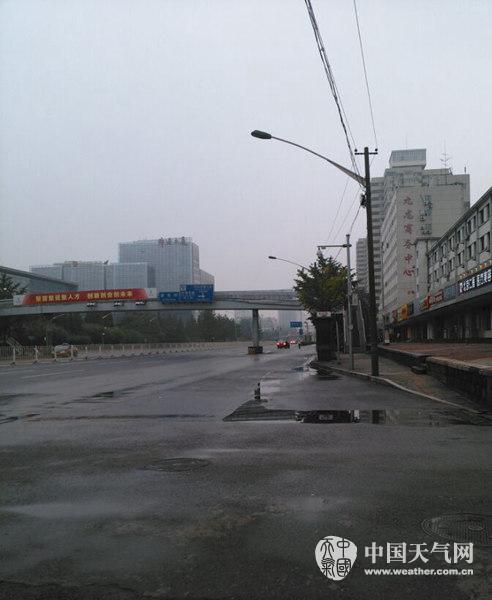 7月30日晨,北京雨后路面湿滑,空气湿度大,能见度不佳。