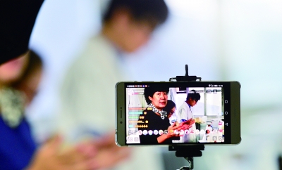 记者在北京智云达食品安全检测中心对检测进行直播