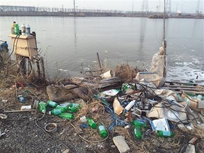 11月26日,天津滨海新区一处鱼塘岸边遍布空药瓶等垃圾。本版摄影/新京报记者 大路