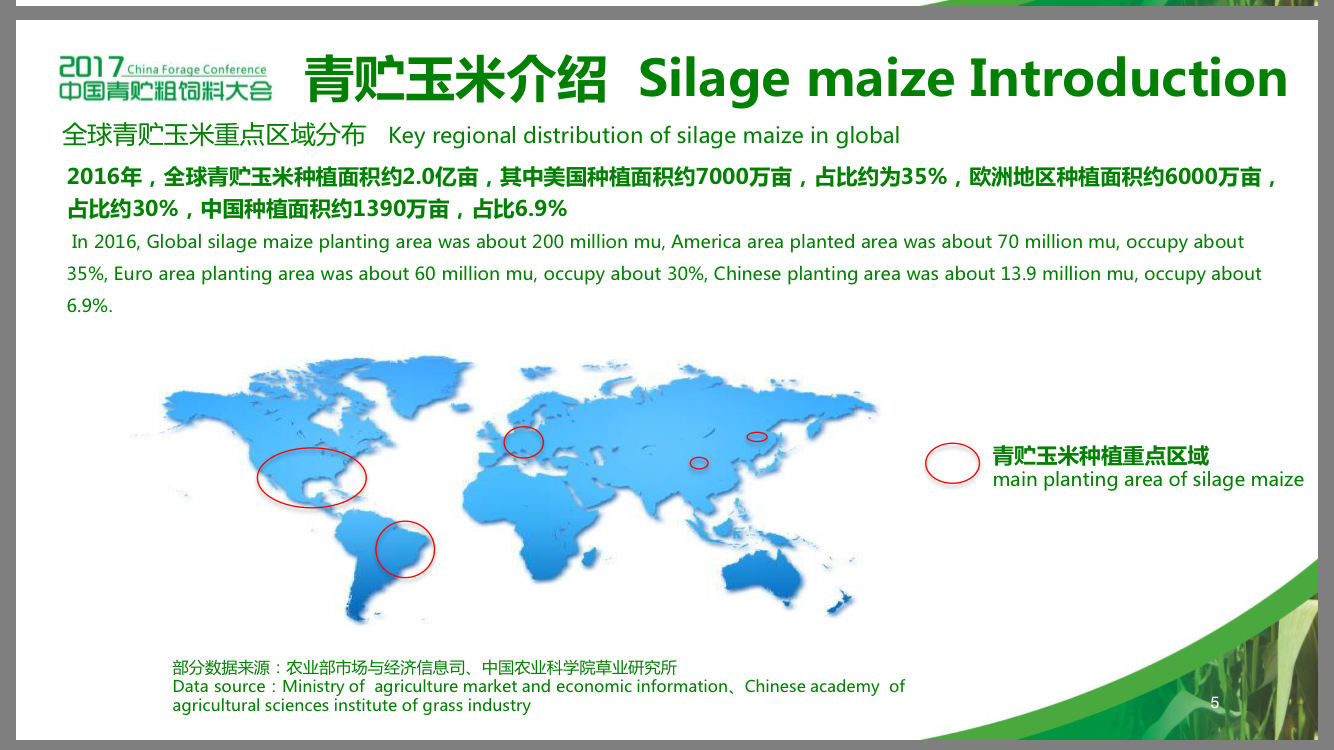 据统计,每年我国玉米消费量的60%以上都用作饲料,但传统的饲喂方式是将玉米籽粒和秸秆分开处理;全株青贮玉米,则是将玉米籽粒与秸秆一起制作成青贮饲料。与全株青贮玉米相比,传统饲喂方式提供的营养物质总量和生产效率都低了不少。
